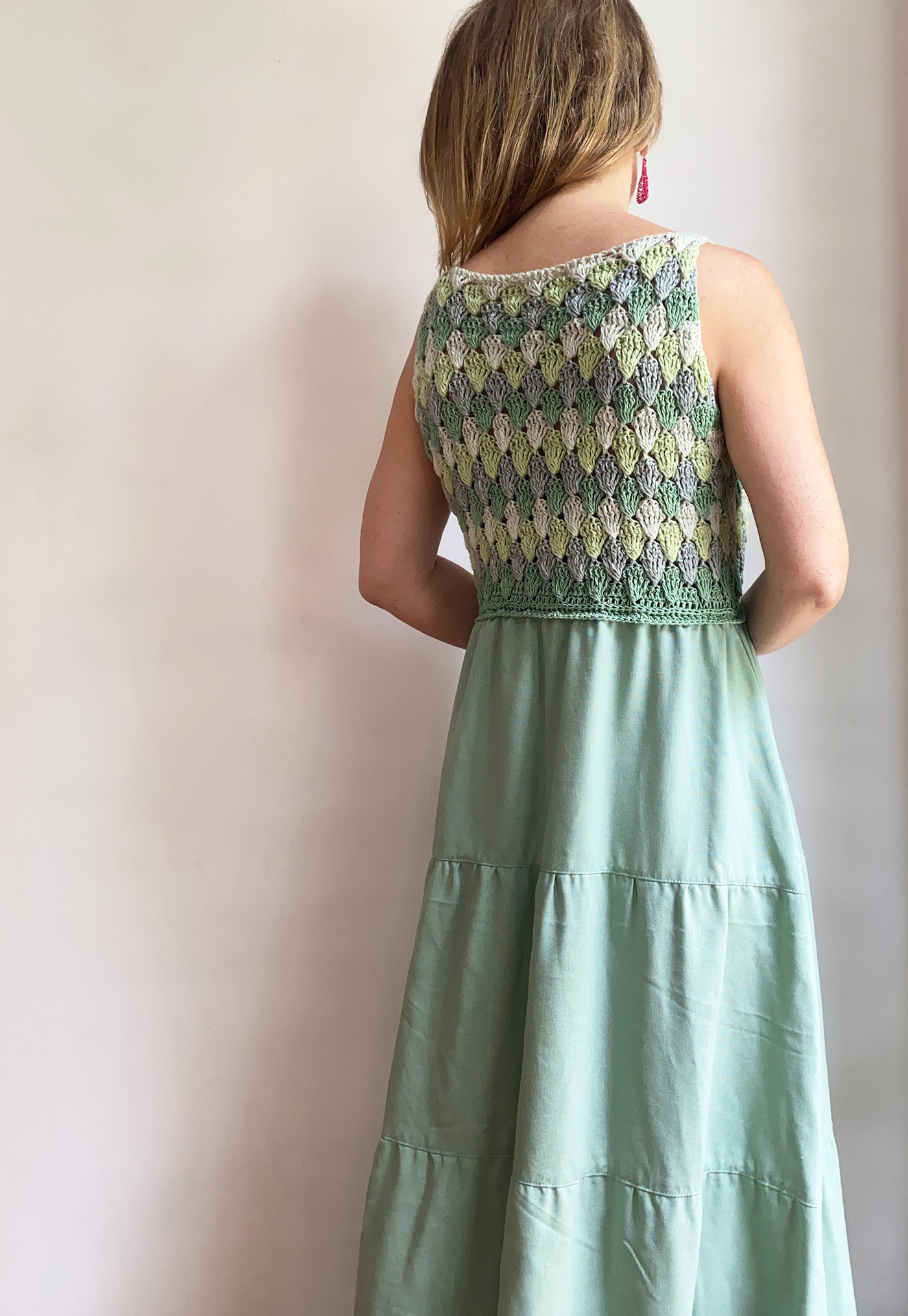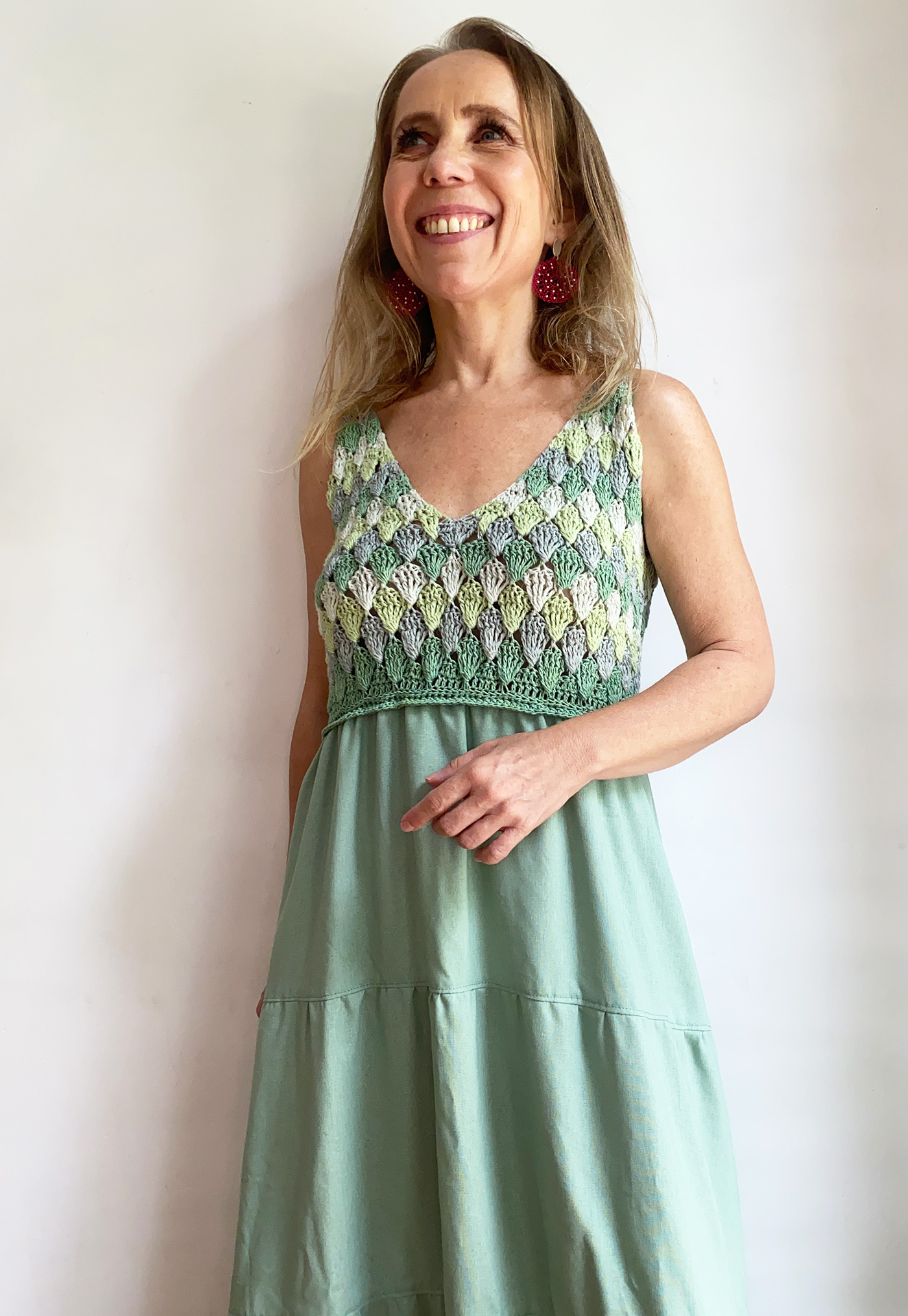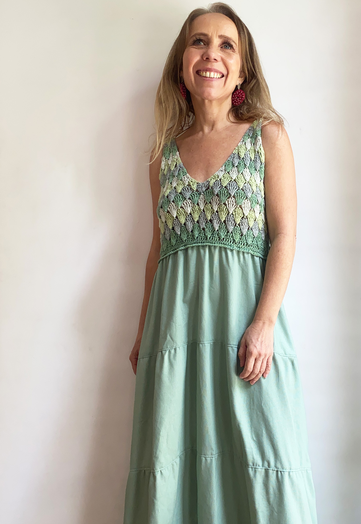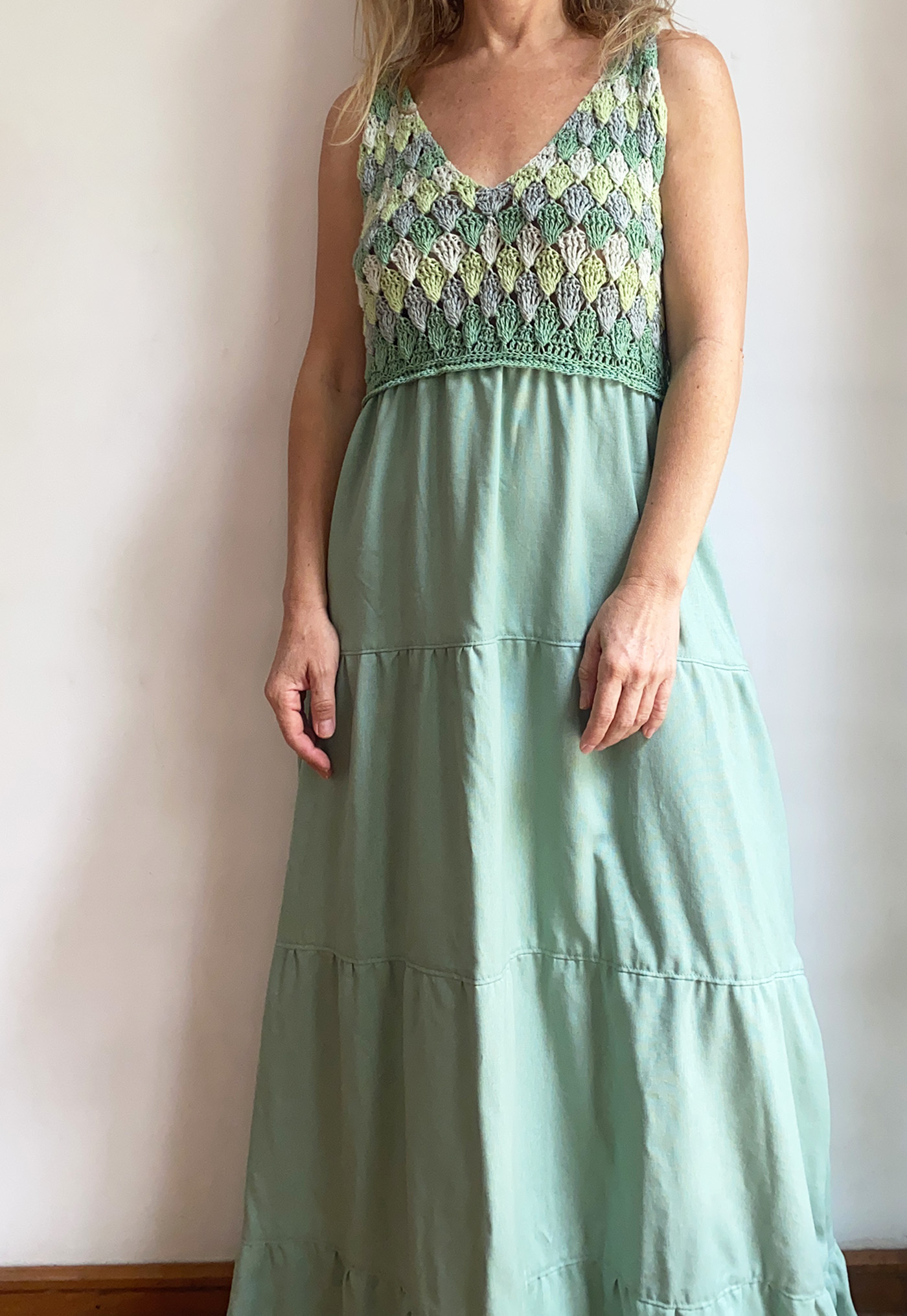Este vestido es ideal para talla M/L, ya que  su parte superior tejida se adapta al cuerpo con suavidad, ofreciendo un ajuste flexible y cómodo.
