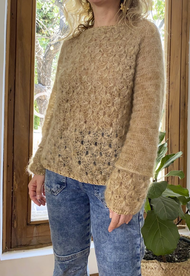 Esta vez lo usé en todo el cuerpo del sweater y también en la manga falsa o doble manga, que propongo para este diseño.