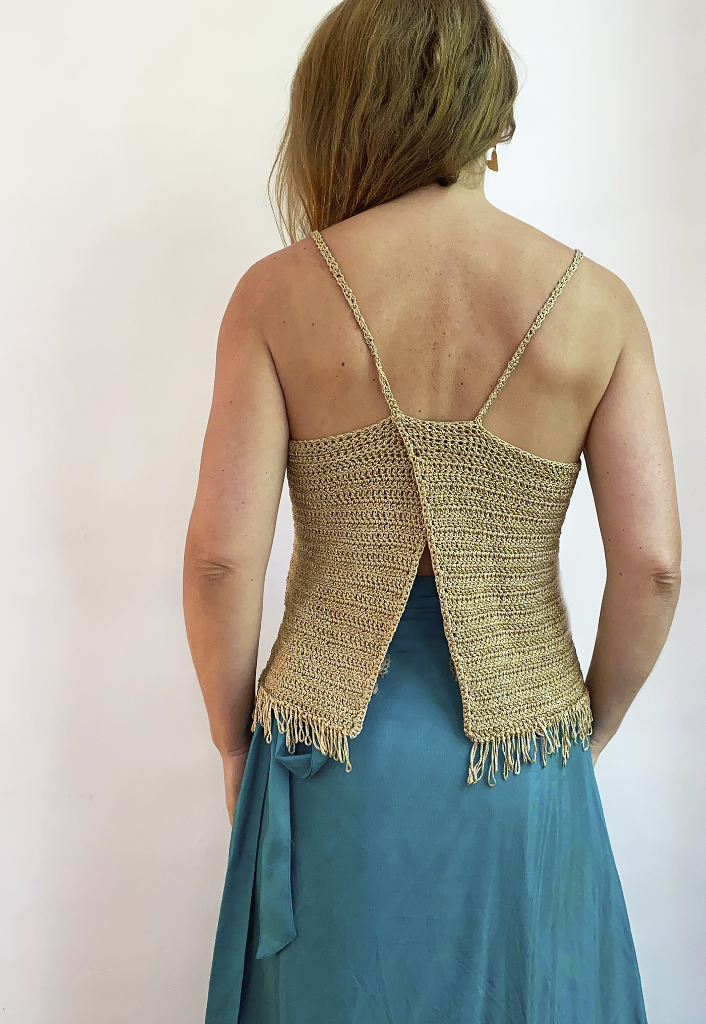 Disponible para tejer en tallas XS- S- M- L- XL en un solo patrón. Se comienza con la medida de tu propio cuerpo, por lo cual siempre te quedará bien.